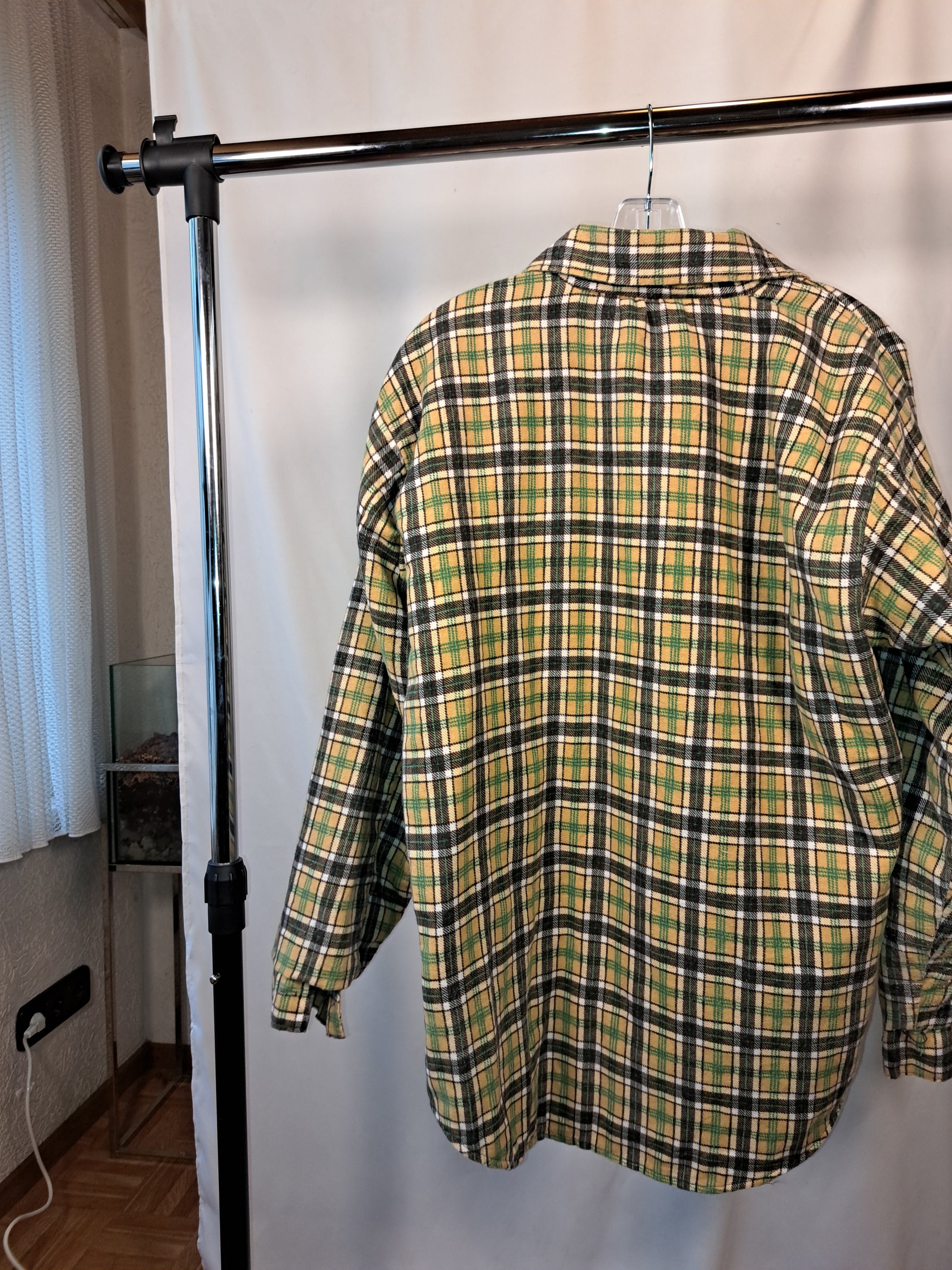 Dieses gefütterte Vintage Flanell Overshirt kombiniert Style und Funktion – perfekt für Herbst und Winter. Das starke grün-gelb-schwarze Karomuster bringt klassischen 90s Lumberjack-Vibe, während das Innenfutter warm hält. Locker zu tragen als Jackenersatz oder Layer über Hoodie.