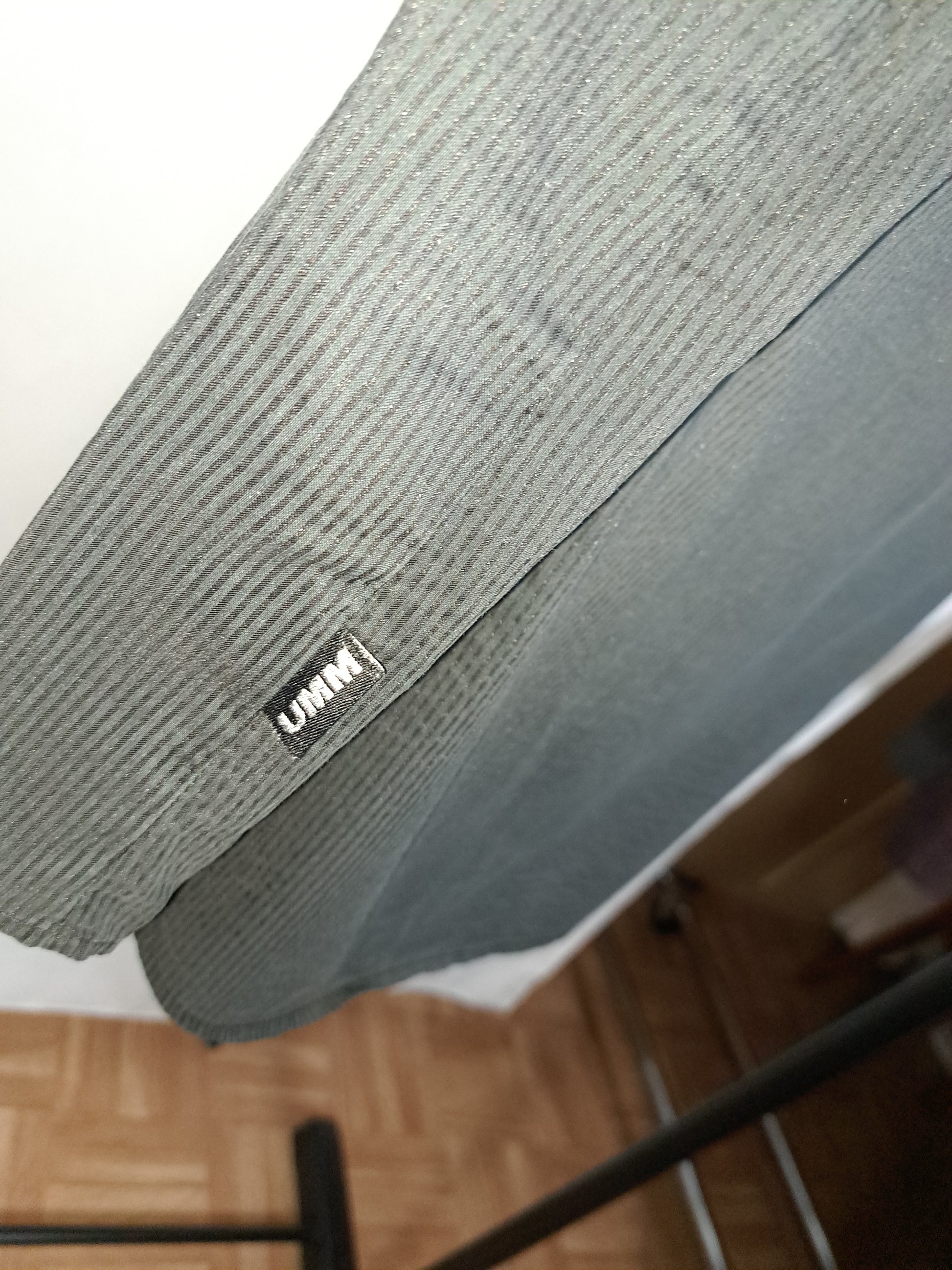 Original UMM Underground Music Movement Kurzarm-Hemd mit Stickerei auf der Schulter und gebrandeten Knöpfen. Farbe: Grau mit feinen schwarzen Streifen.